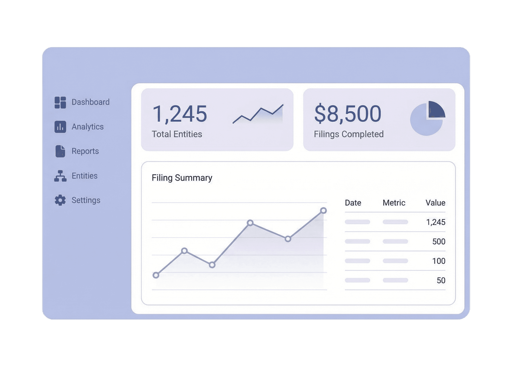 Produce measurable outcomes for clients with structured data on filings and compliance status across your entire portfolio of entities.
